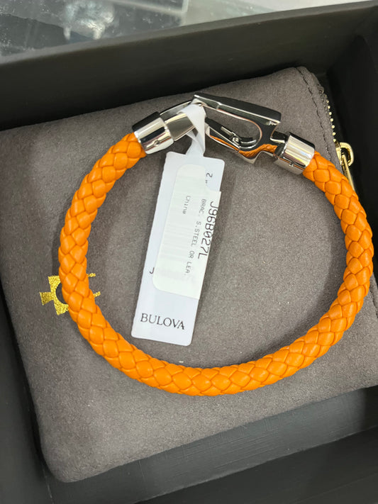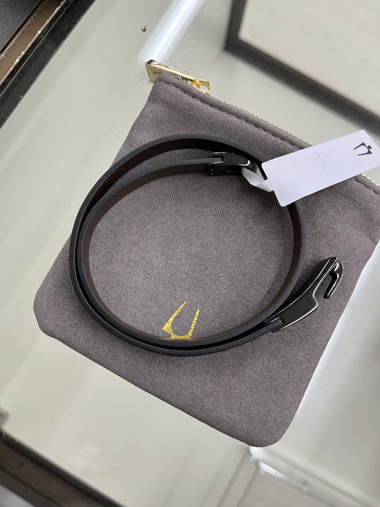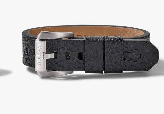 B48) Bulova Jewelry Mens Precisionist Black Leather Belt-Strap Bracelet