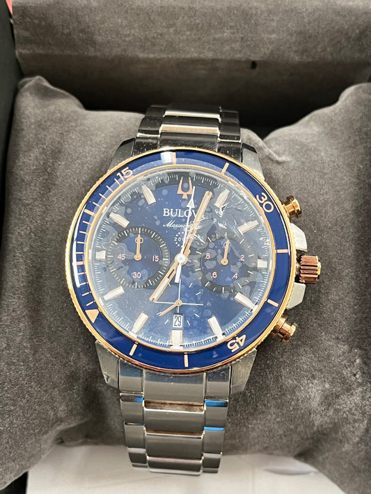 B34) Bulova Performance Marine Star Mens Watch Stainless Steel 98B301