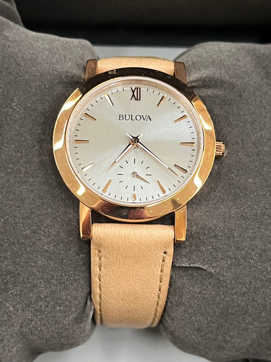 B44) Ladies' Bulova Classic Rose-Tone Strap Watch with White Dial (Model: 97L146)