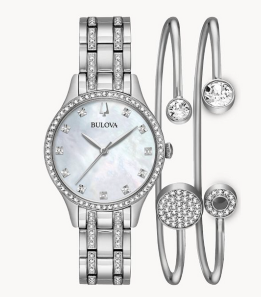 B37) Bulova Women's Crystal Watch and Bracelet Set 96X145