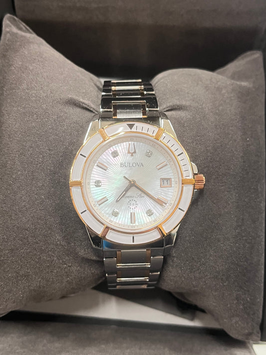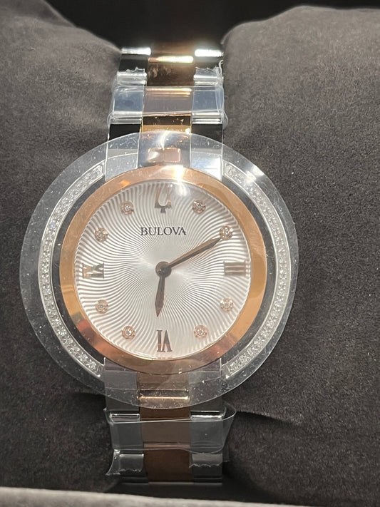 B36) Bulova Rubaiyat Quartz Ladies Watch, Stainless Steel Diamond , Two-Tone (Model: 98R247)