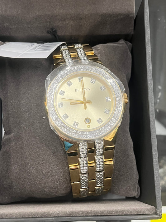 B45) Men's Bulova Crystal Phantom Gold-Tone Stainless Steel Watch | 42mm | 98B174