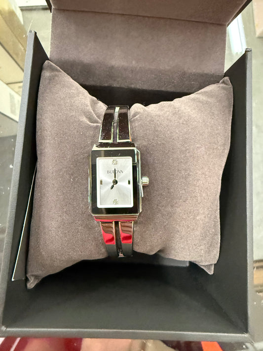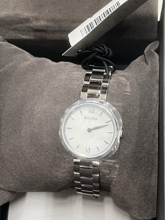 B54) Bulova Ladies' Classic Diamond 3-Hand Quartz Stainless Steel Watch, 12 Diamonds, Mother-of-Pearl Dial