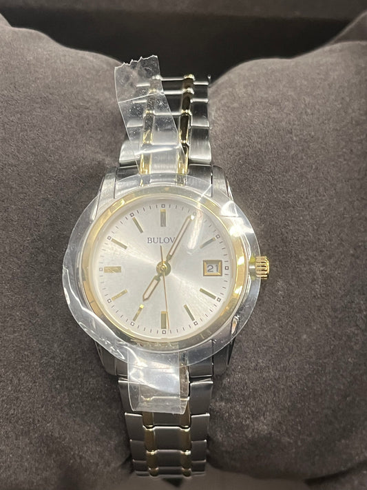 B43) From the Bulova Ladies' Classic Collection, inspired by vintage design, our classic watches achieve a tailored, understated look that's always in style. 3 Hand, Calendar Two-Tone Stainless Steel 30M Water Resistant and 3 Year Limited