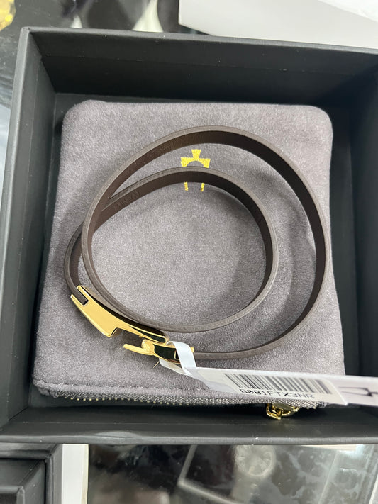 B63) Bulova Men's Leather Double-Wrap Stainless Steel Plaque Bracelet (Model: J96B009L) Large